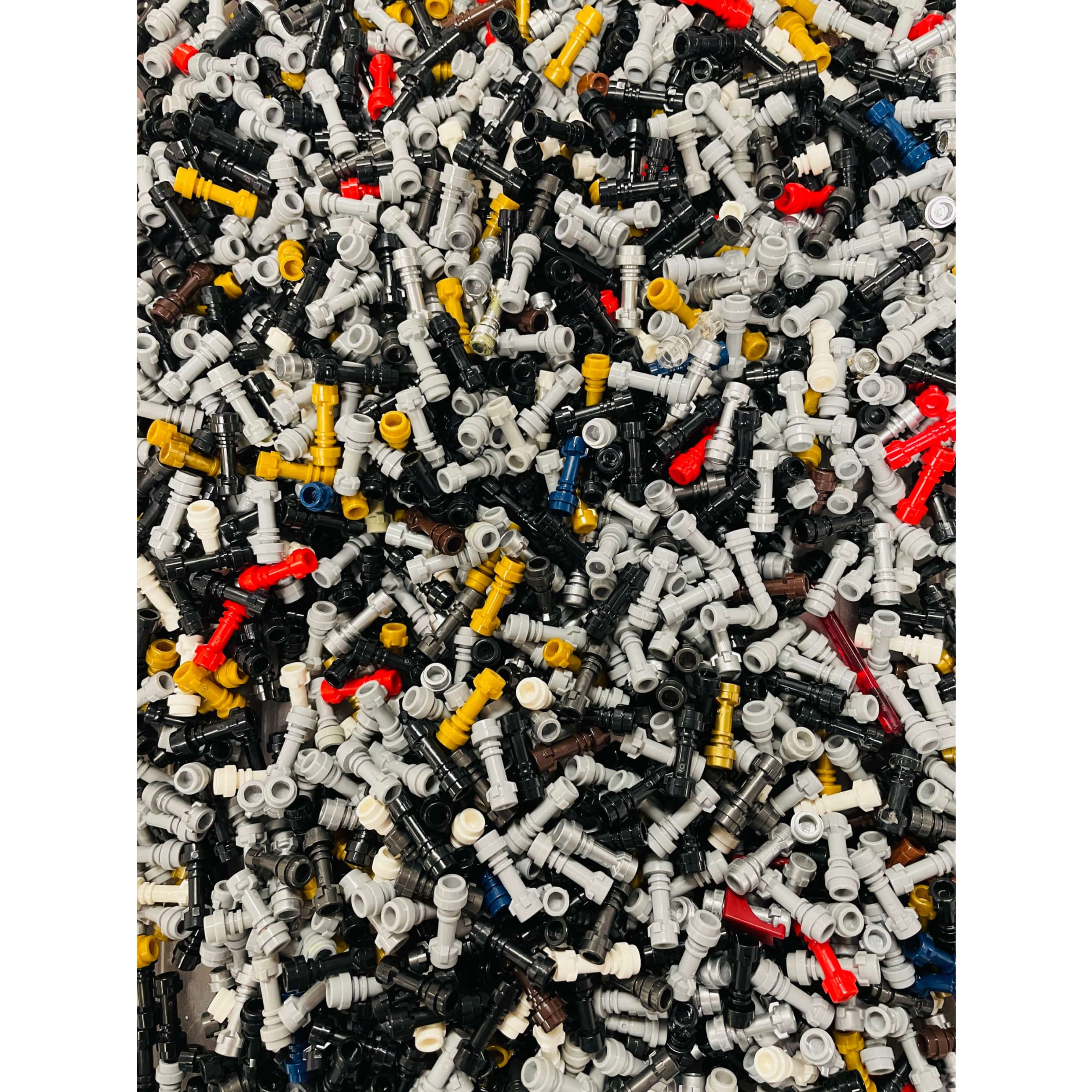 A random selection of colours of Minifigure LightSaber hilt pieces